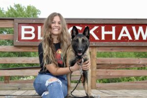 Since then, Izzy has loved bringing that joy to other dogs and handlers through teaching them the fun of all different types of dog sports using positive reinforcement training. She trains in agility, dock diving, disc, rally, freestyle, barn hunt, tricks, and shed hunt with Piper and her border collie, Grayson. She also fosters Belgian Malinois, improving their adoptability through behavior modification and starting them in dog sports.